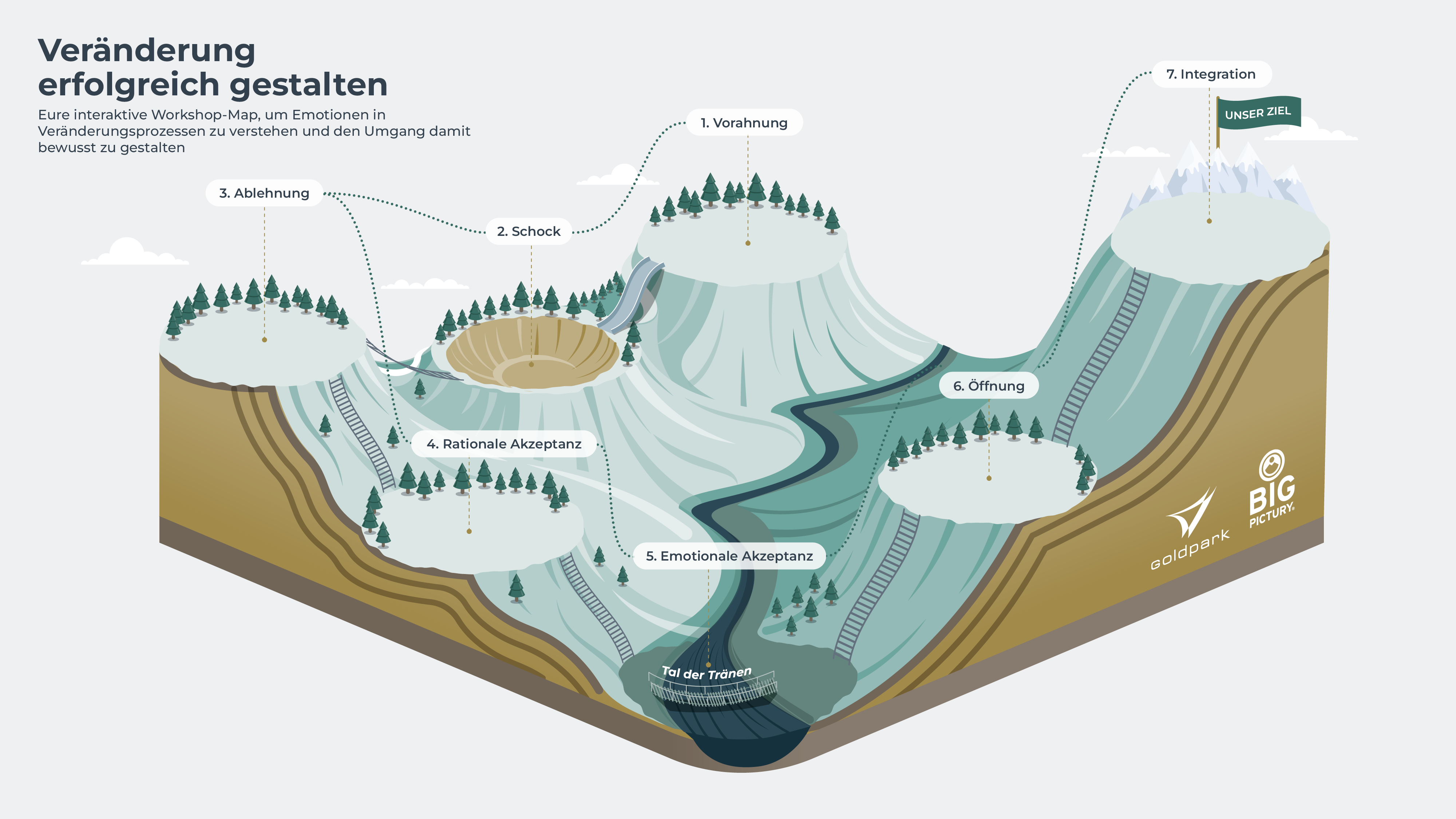 Erfahre, wie man die Veränderungskurve als grundlegendes Modell nutzen kann, um die Bedürfnisse von Menschen in Veränderungen zu verstehen, Widerstände zu überwinden und eine Kultur des Wandels zu schaffen. Entlang der verschiedenen Phasen der Veränderung – von der Einführung neuer Ideen über die Umsetzung bis hin zur Stabilisierung – schaffen wir mit dieser Workshop Box ein inspirierendes Set Up für Reflexion, Auseinandersetzung und Perspektivwechsel. Teilnehmende werden dazu animiert, sich mit den verschiedenen Emotionen und Haltungen der Betroffenen in der jeweiligen Veränderungsphase auseinanderzusetzen und Kompetenz im Umgang damit aufzubauen.